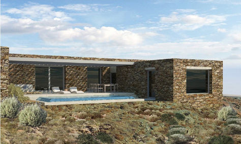 With stunning views to the Aegean Sea, the two residences are designed by GVIDALIS DESIGN & CONSTRUCTION to coexist in harmony with their natural surroundings, while providing sophisticated living spaces to satisfy the most demanding contemporary needs. Both buildings feature underground spaces with roofs that follow the natural slope and a creative use of local materials, which allow them to fully integrate into the landscape. Their “L” shape configuration creates wind-protected front terraces, as well as a feeling of privacy in their infinity pool settings.